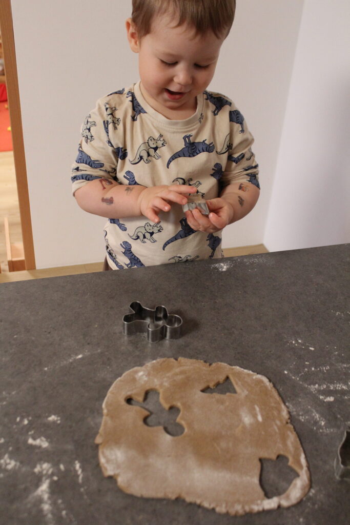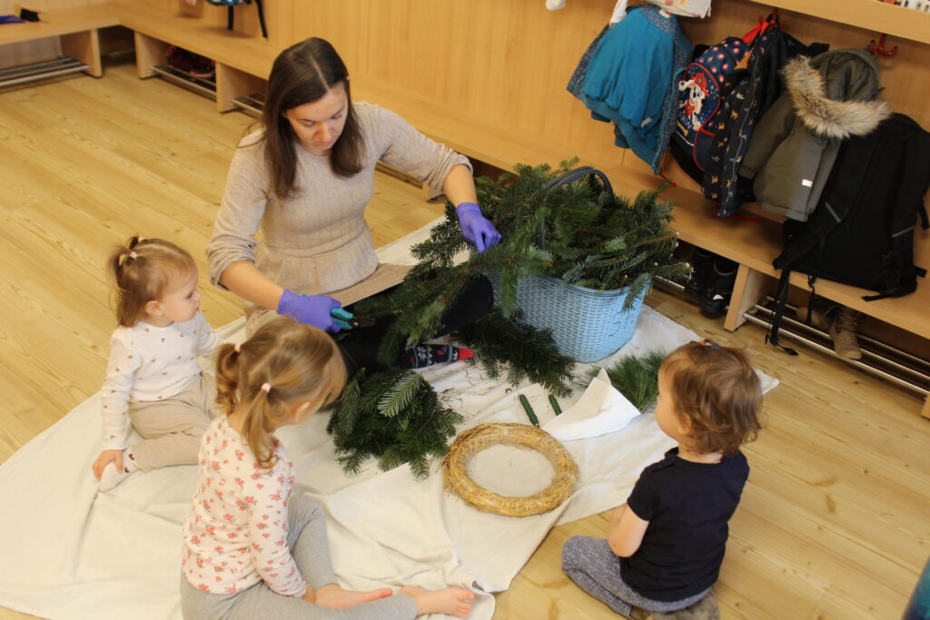 Traditionen wie Adventskranzbinden, Weihnachtslieder singen und Kekse backen werden mit den Kindern gelebt.