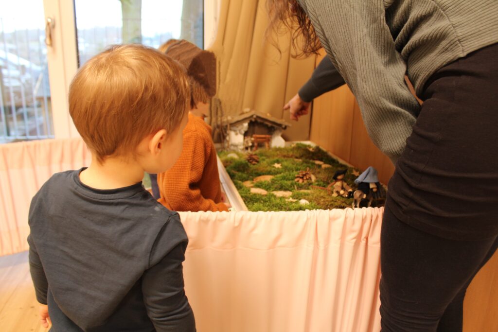Jeden Tag begleiteten wir Maria und Josef ein Stückchen weiter auf ihrem Weg zur Krippe. Die Geschichte der Herbergssuche sowie der kleine Igel begleiten uns täglich. Besonders spannend ist natürlich das Schnuppern des kleinen Igels, der gemeinsam mit der Adventschachtel jeden Tag zu einem Kind nach Hause fahren darf. Bei Tee und Keksen gibt es darin für die Familien allerhand zu entdecken.
