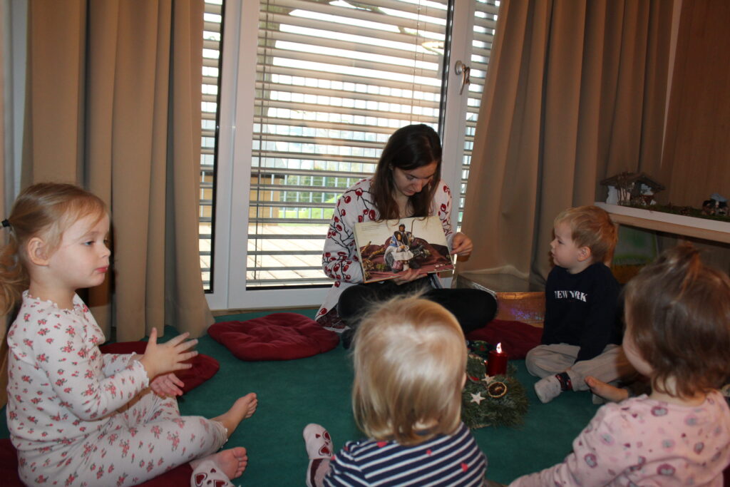 Das Fest vom hl. Nikolaus feiern wir gemeinsam mit den Eltern. Obwohl die Kinder dabei zusehen, wie sich jemand von uns als hl. Nikolaus verkleidet, hat die Gestalt nichts an Magie verloren und es war besonders, als der Nikolaus die Geschenke an die Kinder verteilte.