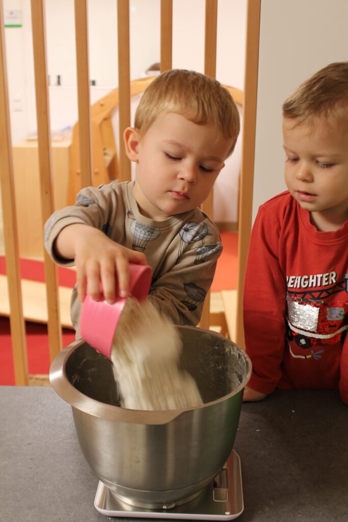 Im Oktober haben wir uns mit den Kindern viel mit der Natur beschäftigt – was verändert sich alles, wofür sind wir dankbar, was entsteht Neues, welche Tiere verstecken sich, wenn es kälter wird,… Im Garten und auch drinnen bieten die veränderten Wetterbedingungen und Naturmaterialien im Herbst tolle Spielmöglichkeiten und Sinneserfahrungen (Nebel, Kastanien, Blätter, Eicheln, nasser Sand, Erde,…)