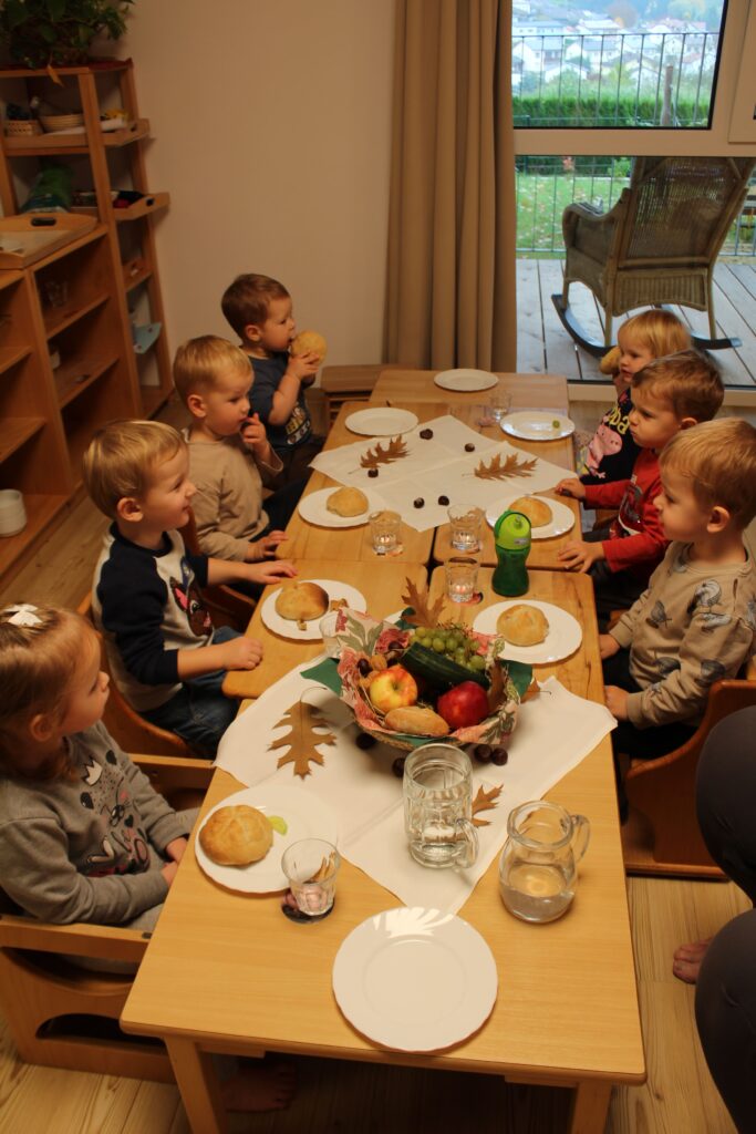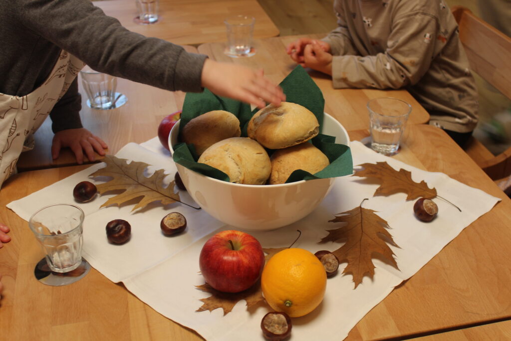 Gemeinsam haben wir auch ein kleines Erntedankfest gefeiert. Wir haben dazu Weckerl mit den Kindern gebacken und in der Kapelle gemeinsam getanzt und gesungen. Nach der Feier in der Kapelle, haben wir uns die gemeinsame Jause gut schmecken lassen.